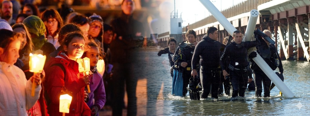 El momento más impactante ocurre cuando una imponente cruz de 4 metros de altura es bendecida y sumergida en el mar. A partir de allí, las estaciones restantes se desarrollan bajo el agua, a lo largo de 500 metros y a una profundidad de 8 metros. Mientras buzos profesionales cargan el símbolo sagrado, un sacerdote relata la pasión y muerte de Jesucristo a través de un hidrófono, permitiendo que su mensaje llegue con claridad a quienes aguardan en la costa.